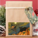 Pegatina Rectangular Gato negro y espantapájaros de calabaza