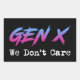 Gen X - No nos importa. Este gracioso accesorio retro de Gen X es un gran regalo para una mujer de Generación X, hombre, esposo, esposa, novio, novia, padre, madre, padre o madre que creció en los años 70, 80 o 90. Este diseño vintage es perfecto para la generación Xers, que recuerda los años 80 y 90, y que tiene nostalgia por íconos, películas, música, bandas y programas de televisión de la época de los ochenta y noventa.