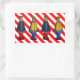 Generales de soldados juguete con un fondo de franja diagonal roja y blanca.