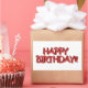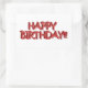 Pegatina Rectangular Glassy Red Happy Birday Text Image