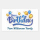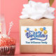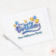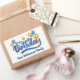 Pegatina Rectangular Globo de oro y azul, feliz cumpleaños