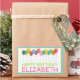 Estos pegatinas divertidos cuentan con una hilera de globos multicolores brillantes y pueden ser personalizados con su elección de nombre y texto especial. Excelente para regalos y bolsos de regalo.