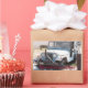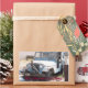 Divertido pegatina de jeep azul con pie de foto.