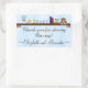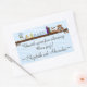 Pegatina Rectangular Gracias a Baby Shower con franjas azules