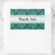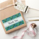 Un conjunto de pegatinas rectangulares de "Gracias" de un nudo celta azul-verde repetido diseño de mosaicos de diamante contra un fondo negro. O, personalizar "Gracias" con su propio mensaje. ¡También disponible en otras formas!