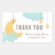 Hermosos Pegatinas de Baby Shower Gracias con un original ilustracion dibujado a mano de una linda y amable luna sonriente dos estrellas y nubes azules. Todos los productos coincidentes están disponibles en una colección.