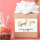 Para el encabezado, he usado un tipo de letra informal, moderno y manuscrita para crear un superpuesto gráfico de tipografía que diga "Gracias". Esta imagen fue embellecida con un suave efecto de Relieve metalizado de oro falso para un resultado festivo. Rellene los espacios en blanco de la plantilla con sus detalles para personalizar el diseño. Todas las capas se dejaron sin bloquear, por lo que también puede hacer clic para ver más personalizares y reposicionar texto o incluso cambiar tamaños o tipos de letra. Cambie el fondo a cualquier color que prefiera. // 105 //