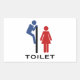 Diseño divertido de su inodoro y el suyo. Un hombre toma una camioneta sobre la pared divisoria de un baño público de hombres y mujeres.