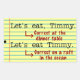 Este hilarante pegatina rectangular para escritores, editores, bibliotecarios, profesores de inglés y snobs gramaticales ilustra la importancia de la puntuación. Cuando llamas a Timmy a cenar, necesitas una coma. Cuando estás tramando canibalizar a Timmy en una balsa, deja la coma atrás. Timmy estará agradecido en la situación #1 - y todos los demás en la balsa estarán agradecidos en la situación #2. Sea cual sea la situación, serás un orgulloso miembro de la policía de gramática. El fondo parece papel amarillo.