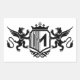 Pegatina Rectangular Griffins flanqueando un escudo con la letra "M"