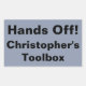 Mantén tus herramientas a salvo de las manos errantes con nuestro pegatina "Manos fuera de la caja de herramientas". Tanto si eres un hombre a mano profesional como si te gusta abordar proyectos de bricolaje en casa, este pegatina es una manera lúdica de mostrar a otros que tu caja de herramientas está fuera de los límites.