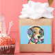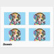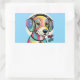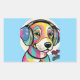 Este vibrante y colorido pegatina personalizado presenta un lindo cachorro con auriculares. El pelo del cachorro es una mezcla de colores y patrones brillantes, dándole una apariencia ruidosa y retro. El pegatina es perfecto para añadir un toque de personalidad y diversión a tus pertenencias o para compartir con un amante del perro.
