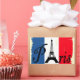 Ilustracion Grunge Paris con Torre Eiffel sobre fondo de bandera francesa