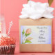 Un personalizado Guardar el pegatina de fecha con letras de guión y un rosebudo rosado de bonito con un rosebud más pequeño apenas comienza a abrirse. Un elegante acercamiento de un antiguo cuadro botánico.