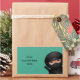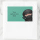Adorable gorgote pero temeroso parece un pequeño ninja, vestido con ropa negra y llevando katana - tradicional espada japonesa.