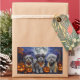 Descanse el espíritu espeluznante con este inquietante diseño de Halloween que presenta una manada de perros bajo un cielo oscuro, iluminado por la luna, rodeados de bates voladores y calabazas brillantes. Perfecto para los amantes de la diversión con sus peludos amigos.