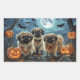 Descanse el espíritu espeluznante con este inquietante diseño de Halloween que presenta una manada de perros bajo un cielo oscuro, iluminado por la luna, rodeados de bates voladores y calabazas brillantes. Perfecto para los amantes de la diversión con sus peludos amigos.