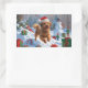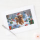 Pegatina Rectangular Havaneses corriendo en Nieve con Gorra Navidad