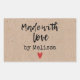 Un rectángulo personalizado "hecho con amor" pegatina con un tipo de letra dibujado a mano en un fondo kraft. Hazlo tuyo añadiendo tu propio nombre. Un toque de bonito para todos tus regalos hechos a mano o hechos en casa. Diseñado para ti por Blackberry Boulevard.