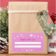 Simple hecho con amor etiqueta de regalo con un esquema de color rosa y blanco y salpicaduras de estrellas.