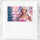 Pegatina Rectangular Hermoso Chica de Navidades rosados 01