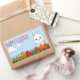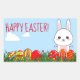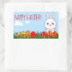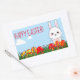 Pegatina Rectangular Hermoso conejo de Pascua y huevos con hierba