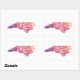 Este diseño presenta un mapa acuarela del estado norteamericano de Carolina del Norte con una textura multicolor, rosa, púrpura, roja y naranja pintada a mano a acuarela. El mapa está aislado en un fondo blanco y el texto estilizado de "hogar dulce hogar" se agrega por encima.