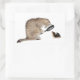 Imagen conceptual humorística de un gato miope con miopía mirando a un pequeño ratón a través de una lupa aislada en blanco