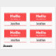 Pegatina Rectangular Hola Mi nombre es - gingham rojo y blanco