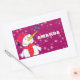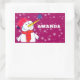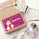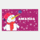 Hombre de nieve con Navidades de Nieve Pegatina rectangular. Navidades Snowman pegatina de regalo de vacaciones para niños. Pegatina de regalo de Navidad - personalice al pegatina con el nombre del niño. El pegatina tiene un lindo muñeco de nieve con un copo de nieve en la nariz. El fondo es morado con hermosos copos de nieve blancos de diferentes tamaños y formas. Haz que tus Navidades regalen regalos para los niños especiales con este pegatina divertido y lindo de vacaciones. A los niños les encantará.