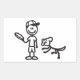 Pegatina Rectangular Hombre de palo y perro jugando a Frisbee