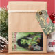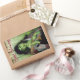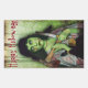 El chica zombi muerto en estos temibles pegatinas rectangulares de Halloween tiene una hermosa piel verde, heridas sangrientas abiertas y ojos blancos. Está vestida como una gitana con ropas modestas y manchadas y se ve muy romántica y dramática a medida que camina por el bosque nublado. Envuelta alrededor de su brazo hay una bolsa con un hueso saliendo, y aferrada poéticamente en sus manos son un hacha y un cuchillo. Se parece a la moderna Mona Lisa de zombies, con una pequeña sonrisa en sus labios verdes. El texto rojo dice "Feliz Halloween". Estos son buenos pegatinas espeluznantes para el fanático zombie de Halloween.