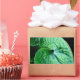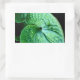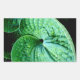 Las hojas de hosta exuberantes brillan con gotas de rocío y hacen pegatinas encantadores para un amante de la naturaleza o del jardín.