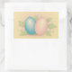 Pegatina Rectangular Huevos de pascua azules y rosas y flores de primav