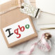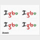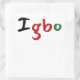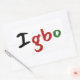 Un pegatina encantador, este artículo presenta "Igbo" en coloridos colores negro, verde y rojo. El fondo es blanco, pero se puede personalizar como traje. Elija entre varias formas.