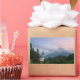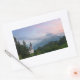 Pegatina fotográfico rectangular con coloridas nubes en el cielo durante la puesta de sol sobre la iglesia de Maria Gern con vistas a la gran montaña Watzmann en los Alpes alemanes cerca de la frontera con Austria en Berchtesgaden en Baviera, Alemania.