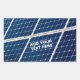 Vista más cercana de un panel de energía solar. Día soleado. Los colores azul y blanco. pegatina de personalizable para cualquiera. Puede cambiar o eliminar el texto de la plantilla.