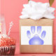 Una brillante y transparente huella de una pata de perro hecha de vidrio. Toda la imagen digital que reproduce la textura del vidrio.