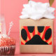 Una huella de un perro con vigas de luz en naranja y rojo. Diseño original.