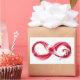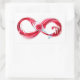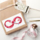 Infinity symbol of continuous stream of red wine pouring into glass wine glass on white background.