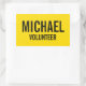Pegatina Rectangular Insignia de voluntario amarillo con nombre persona