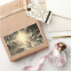 Pegatina Rectangular invierno de copos de nieve dorados blancos