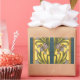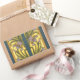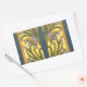 Pegatina Rectangular Iris Flor Art Nouveau Vidrio Manchado Oro Azul