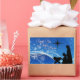 Los encantadores stickers de Navidad eligen la Biblia Verse Isaiah 9:6, "A nosotros nace un niño", y presentan una hermosa Escena de la Natividad de la Silhouette con un fondo en tonos azules y blancos con cielos llenos de estrellas y copos de nieve. Blue Winter Background con Copos de Nieve, CC BY 3.0 US en Vector de Flores*.