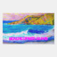 muestra la colorida cala tranquila de la pintura original con el lema "isla beachcomber".