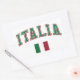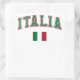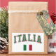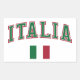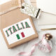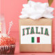 Este artículo tiene a ITALIA en un estilo colegiado en un arco sobre la bandera italiana. El diseño se basa en los colores italianos: rojo, blanco y verde. La bandera de Italia es una tricolor con tres pales verticales de tamaño igual de grande de verde, blanco y rojo, con el verde en el lado de la entrada. Su forma actual está en vigor desde el 19 de junio de 1946 y fue aprobada oficialmente el 1º de enero de 1948.