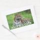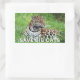 Pegatina rectangular con una imagen de un guaguar apuesto en el pasto y un mensaje opcional importante. El jaguar es una especie casi amenazada y su número está disminuyendo. Vea la colección completa de Pegatinas de Naturaleza y Vida Silvestre en la sección CARDS, POSTCARDS & PEGATINAS.