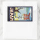 Afiche de viaje Art Déco para Japón que muestra un ciervo en primer plano y la Puerta Torii en el Santuario de Itsukushima.