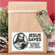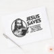Pegatina Rectangular Jesús salva revisando los libros de la biblioteca