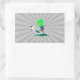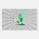 Pegatina Rectangular jugador de fútbol extraterrestre divertido pateand